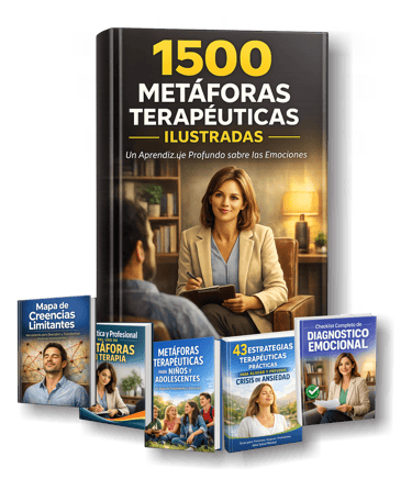 Revoluciona tu enfoque terapéutico con poderosas metáforas que simplifican conceptos complejos y despiertan aprendizajes profundos sobre las emociones. Este material exclusivo será tu herramienta diaria para sesiones más impactantes.